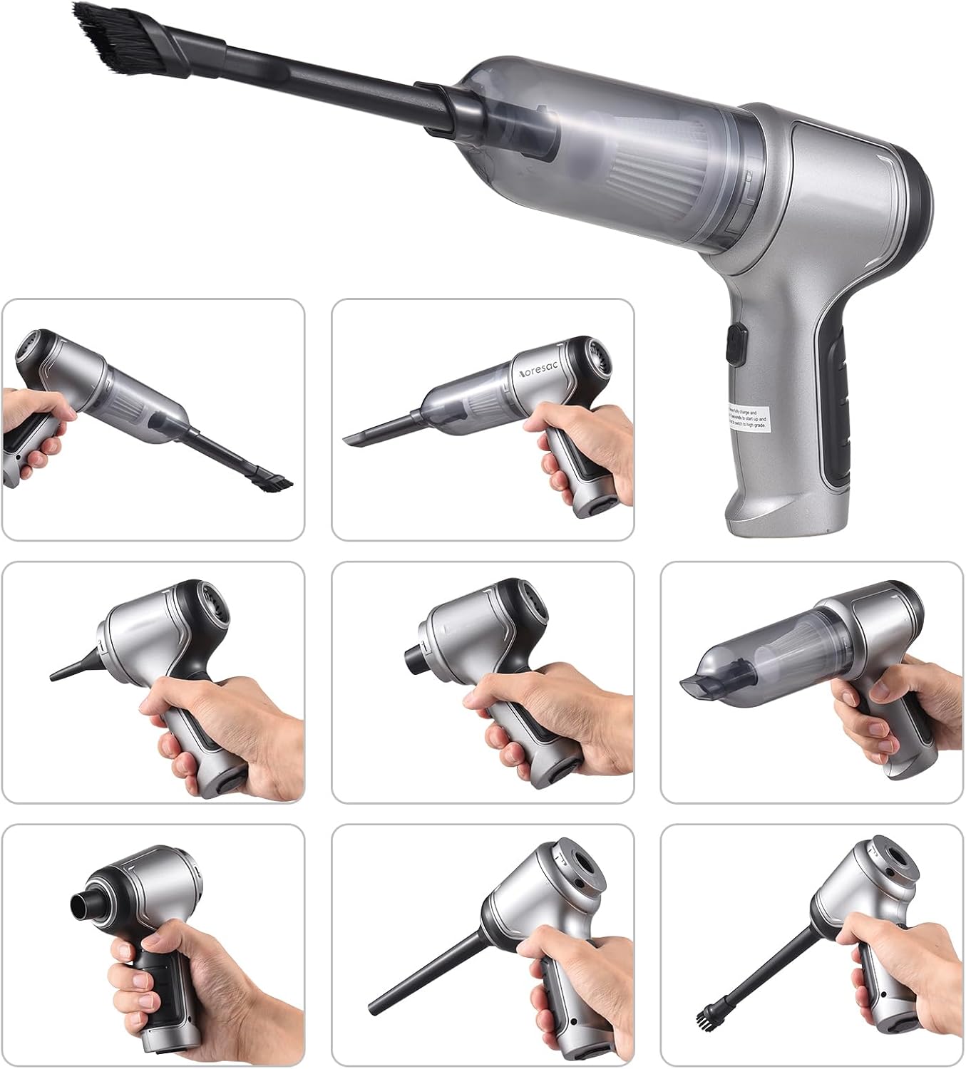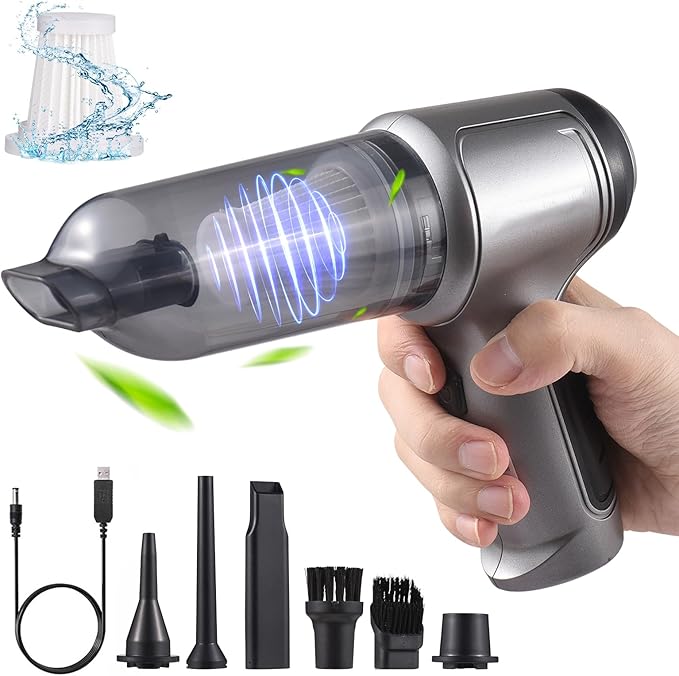 Küçük boyutuna rağmen yüksek emiş gücüyle fark yaratan bu silah tasarımlı mini elektrikli vakum, temizlikte hız ve pratiklik sunar.